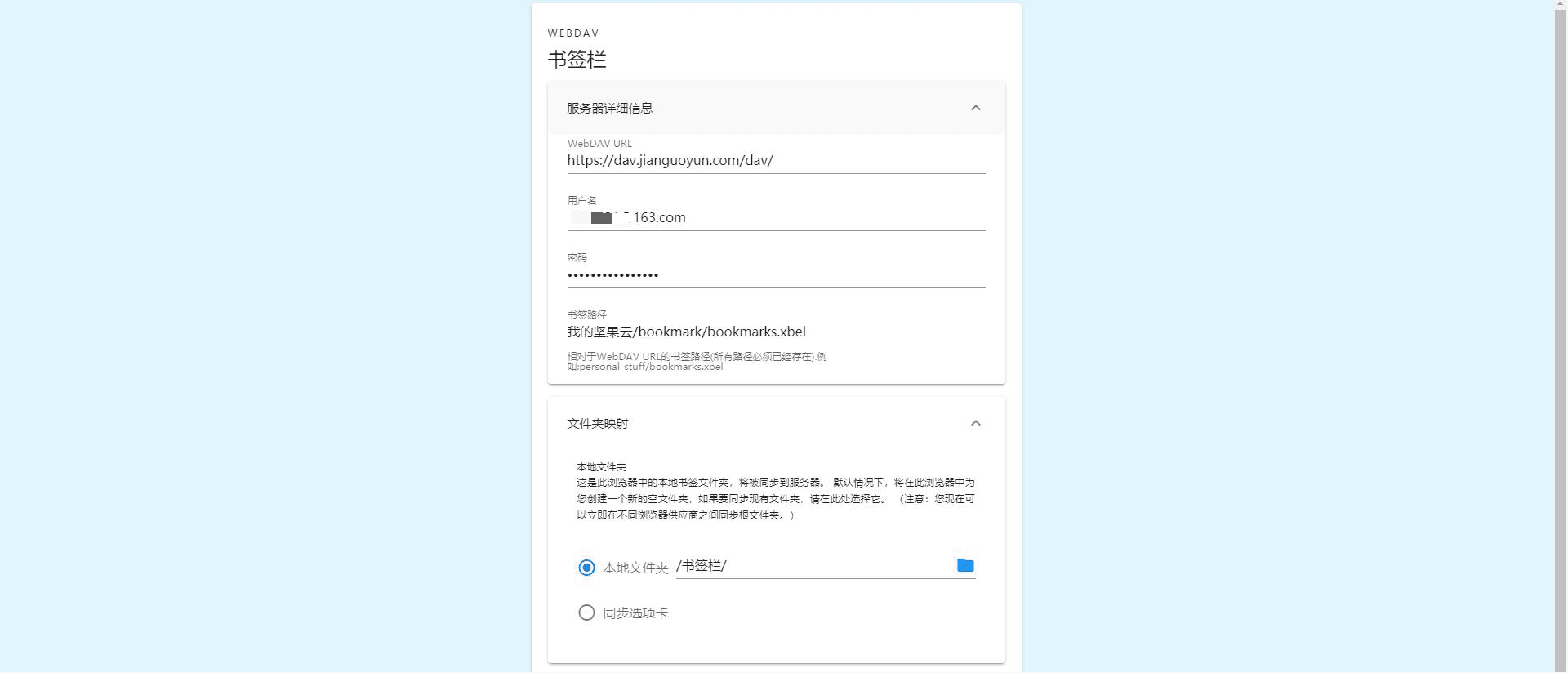 文件映射:我选择的是直接同步谷歌浏览器的书签栏,(也可以用新建的文件夹,不影响当前的书签文件夹)