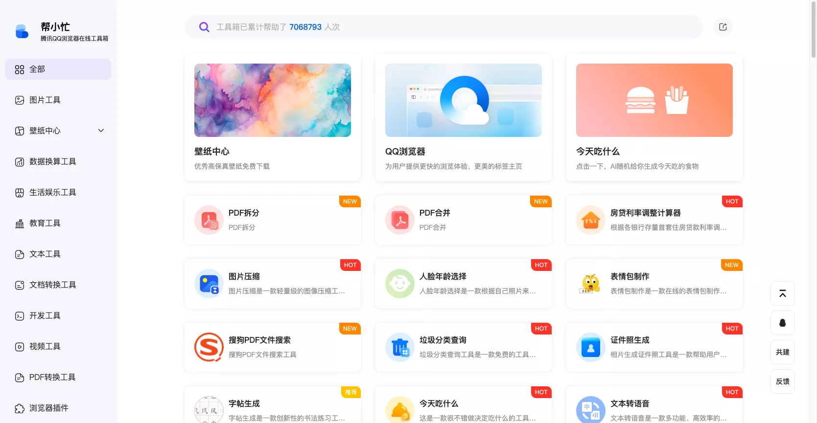 在线聚合工具:帮小忙(腾讯QQ浏览器在线工具箱)