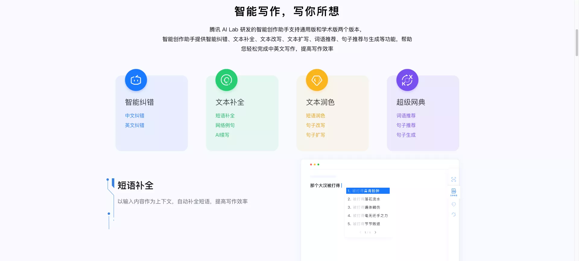 智能创作助手 Effidit(Efficient and Intelligent Editing) 是由腾讯 AI Lab 开发的一个研究性原型系统,探索用 AI 技术提升写作者的写作效率和创作体验。