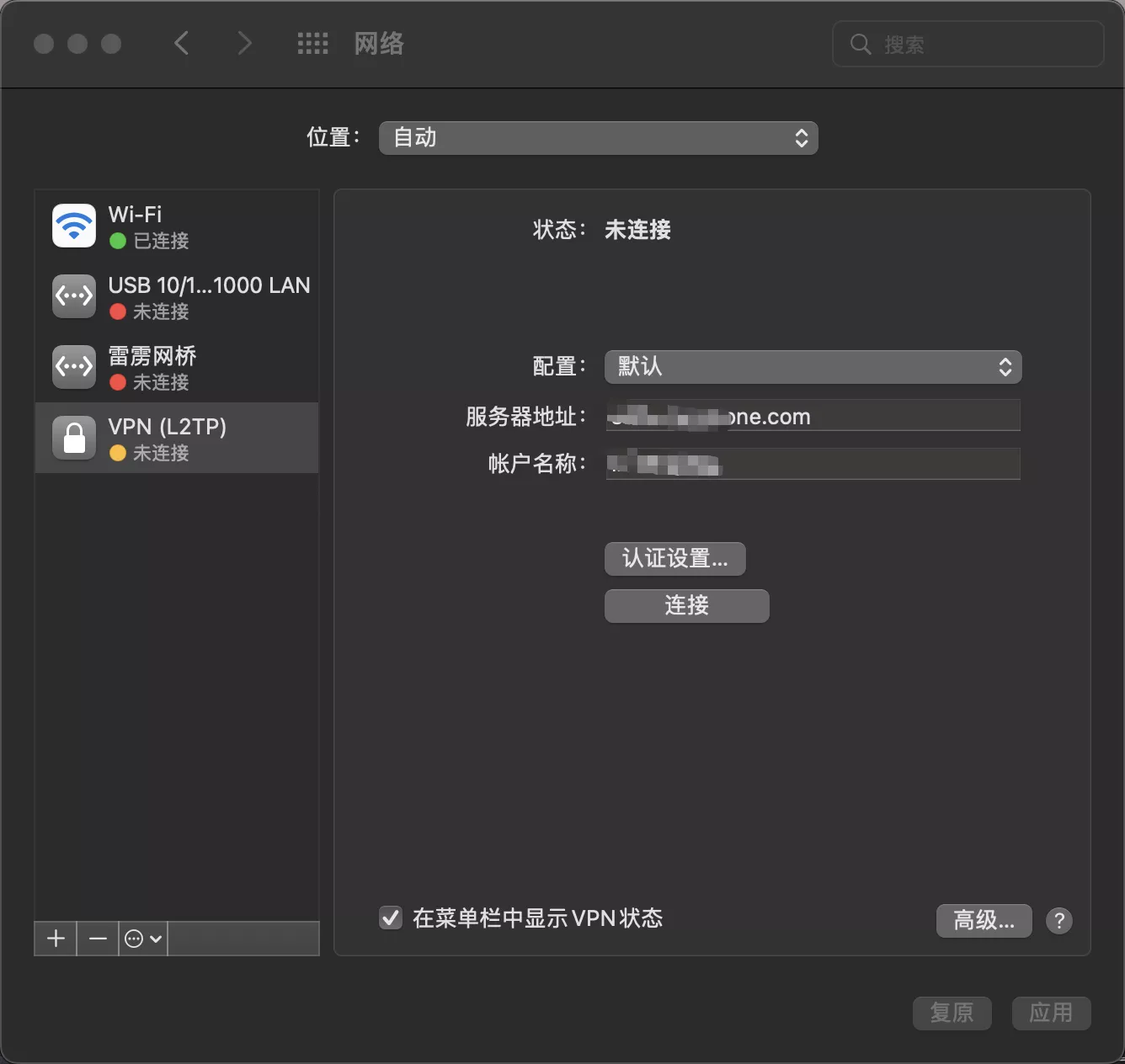 然后正常链接,选择协议:L2TP/IPSec 即可。