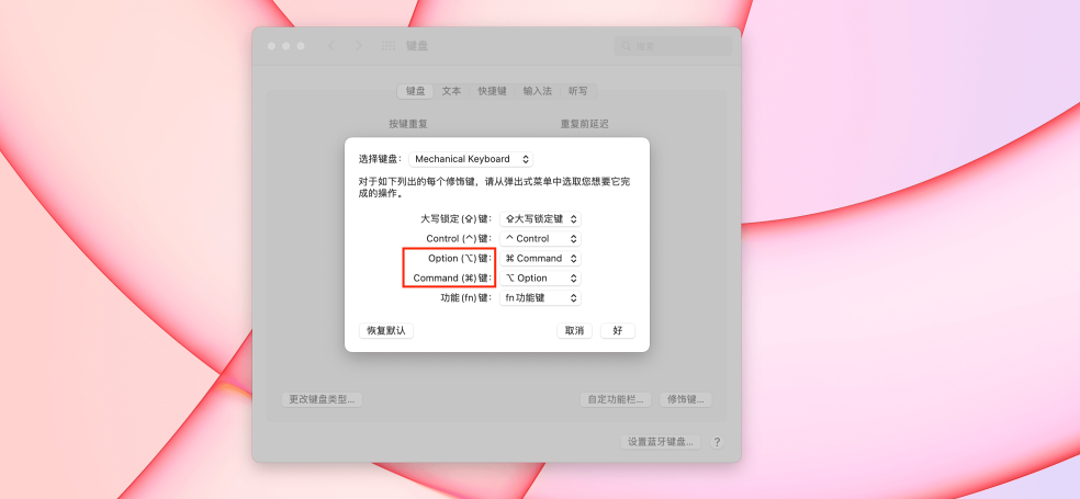 如果你使用 Mac 电脑了,我建议你去熟悉 Mac 的键位顺序,而不是在 Mac上调整为 Win 的键位顺序。