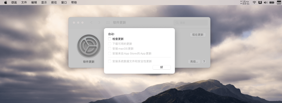 系统偏好设置——>软件更新——>高级,把勾选的都取消掉。