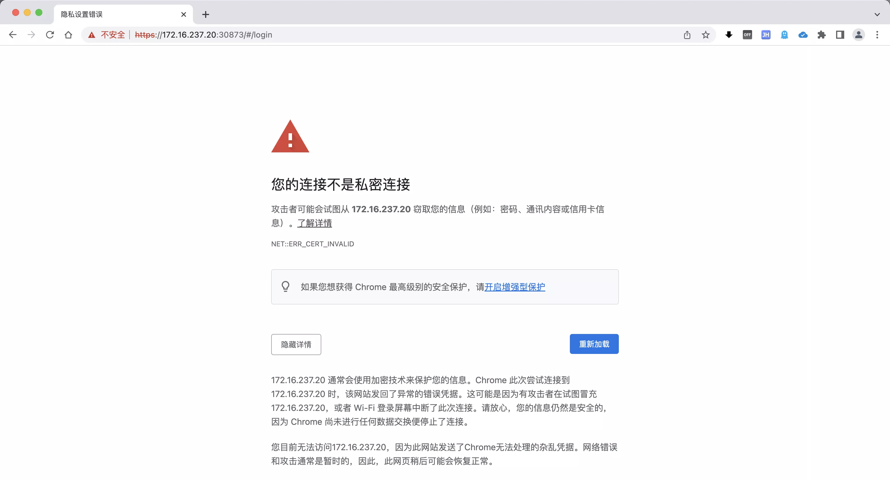谷歌浏览器MAC版,提示您的连接不是私密连接,没有继续访问选项的解决方法2023年1月26日 · 阅读需 1 分钟猿1993👨🏻💻🍼奶爸&&程序猿ᴴᵉˡˡᵒ ᵂᵒʳˡᵈChrome for Mac(谷歌浏览器 MAC 版)提示您的连接不是私密连接,没有继续访问选项解决方法。 我今天在部署服务的时候发现的,用的 https 访问后,提示你你的访问不是私密连接,但是在下面的高级选项中没有继续访问的地址(这个在 windows 下是可以点击继续访问的) 解决办法: 在提示的页面输入 thisisunsafe 复制粘贴不行,必须在这个页面用键盘挨个字母敲出来,然后他就会自动跳转到对应的页面!