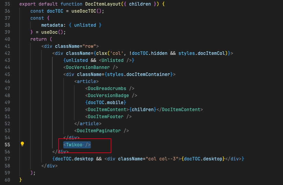 npm run swizzle @docusaurus/theme-classic DocItem/Layout -- --eject