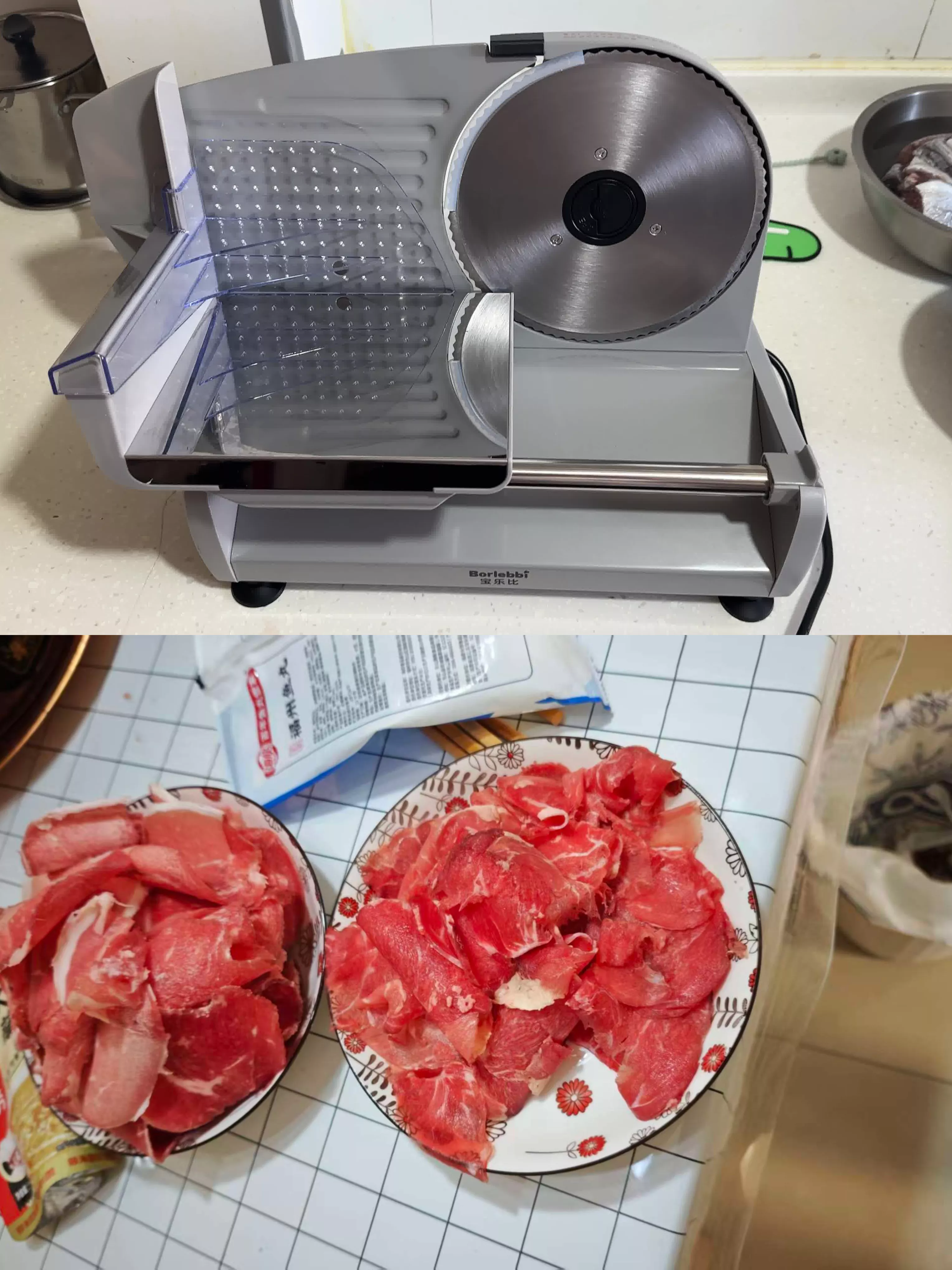 接下来就是切肉片的机器,本来想买手动的切片机,大概六七十块钱,但是后来看测评说并不是那么好切。