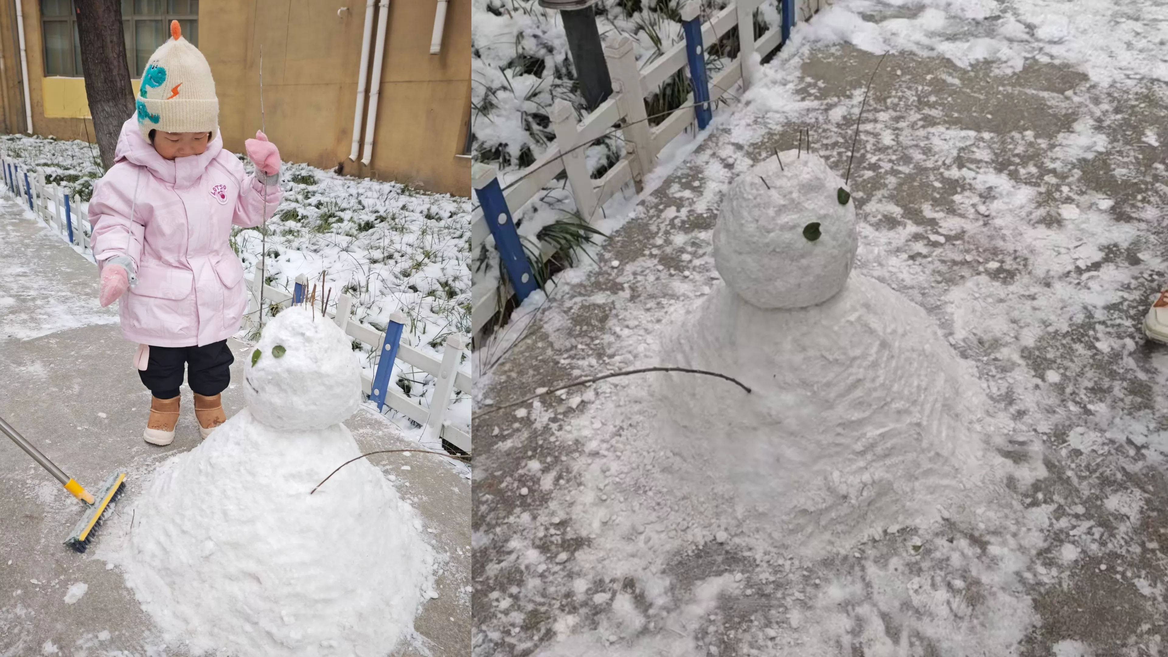 这个月终于是下了一场像样的雪,虽然也不太大,地面上也有一层雪,大宝早就想出去堆雪人了。然后就有了一个丑雪人哈哈。