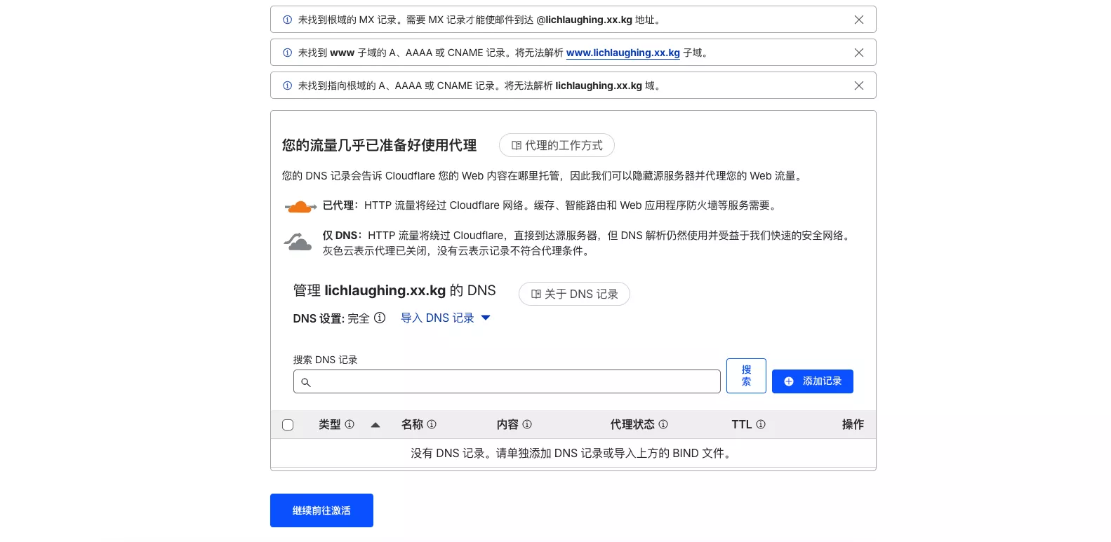 这一步如果不知道填写什么DNS内容,那么先放着,继续看下面的CF域名托管。