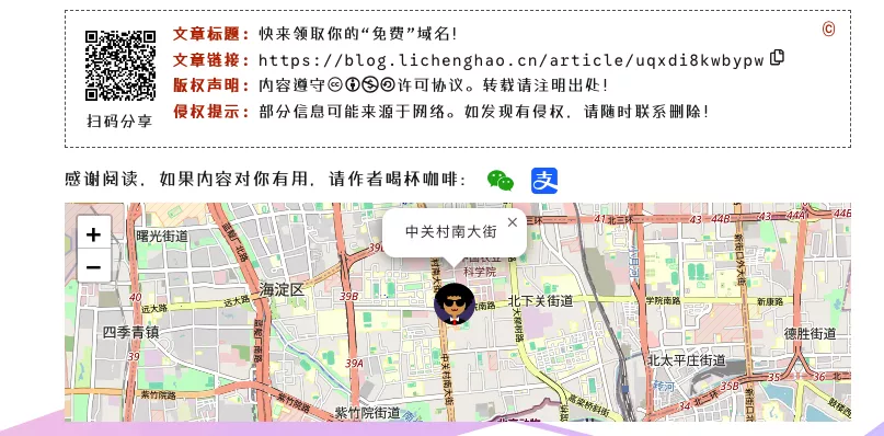 在文章底部增加了一个小地图,展示文章的发布位置。模糊位置,并不是太准确,坐标通过高德的这个网站获取:坐标拾取器 | 高德地图API